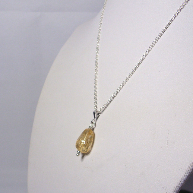 The 16-inch chain and the clasp are both made from recycled sterling silver. The length of the citrine bead together with the bail fitting is approx. 3 cm.