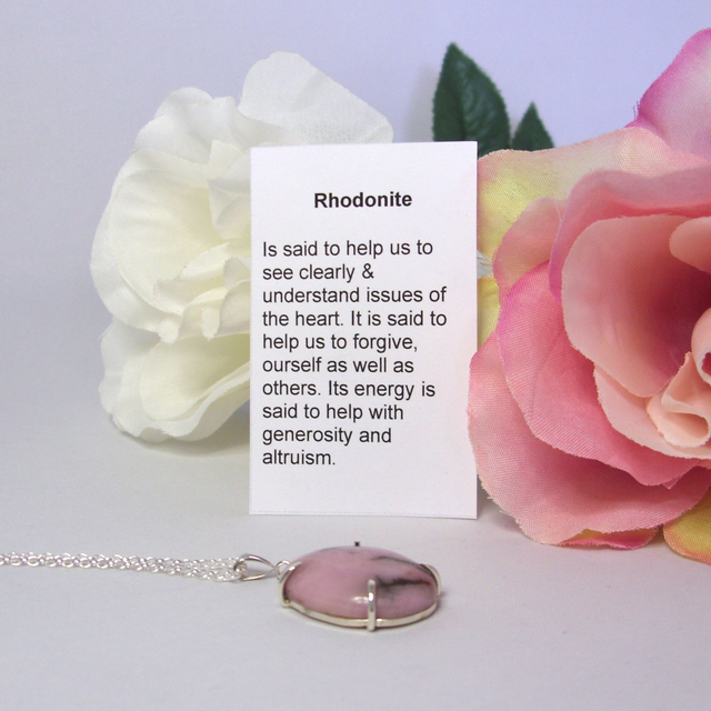 Perfect for everyday wear or special occasions, ideal for meditation, healing or simply as a stylish accessory, this Rhodonite gemstone pendant necklace would make a perfect gift for a loved one or a treat for yourself.